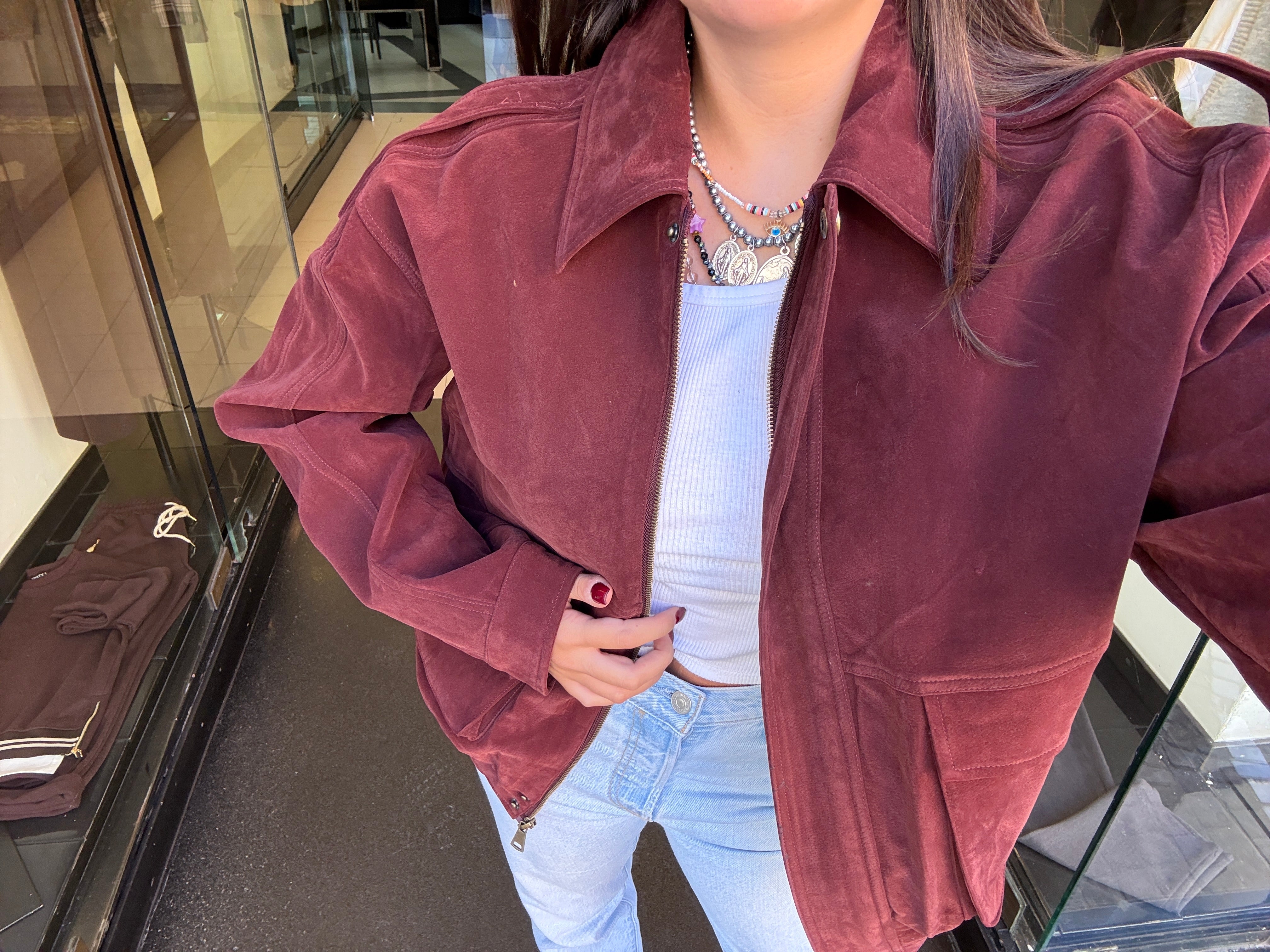 maxi bomber in camoscio bordeaux