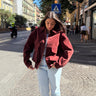 Maxi bomber oversize in camoscio foderato bordeaux