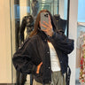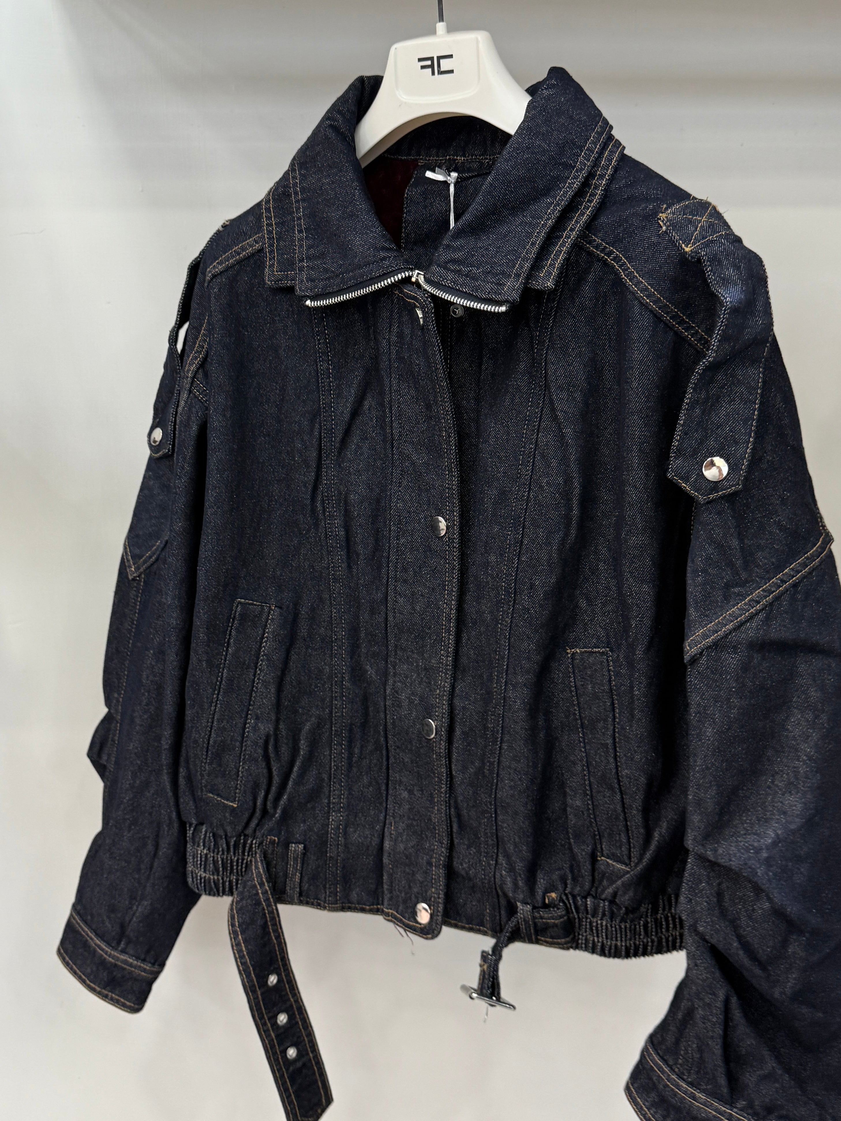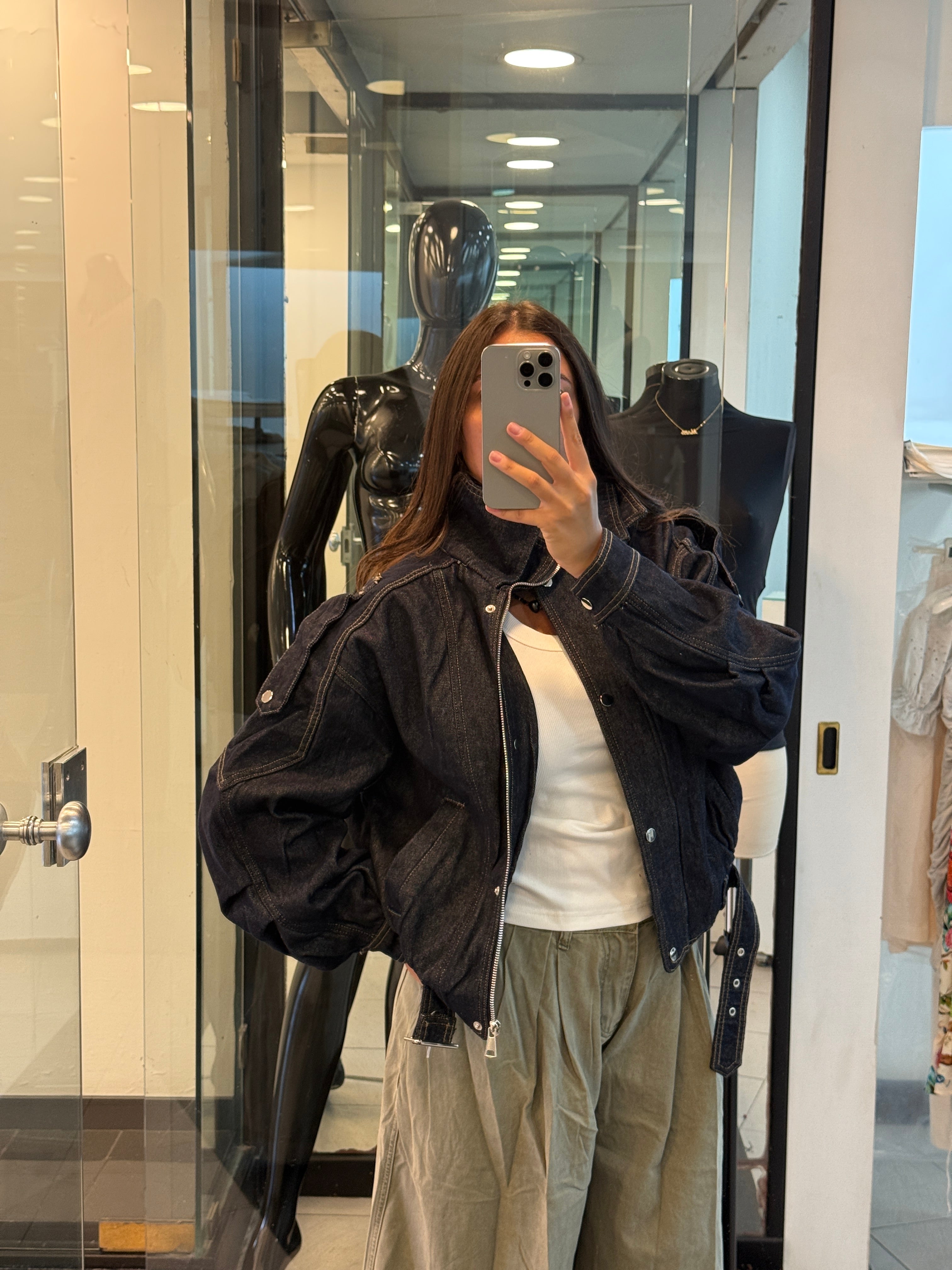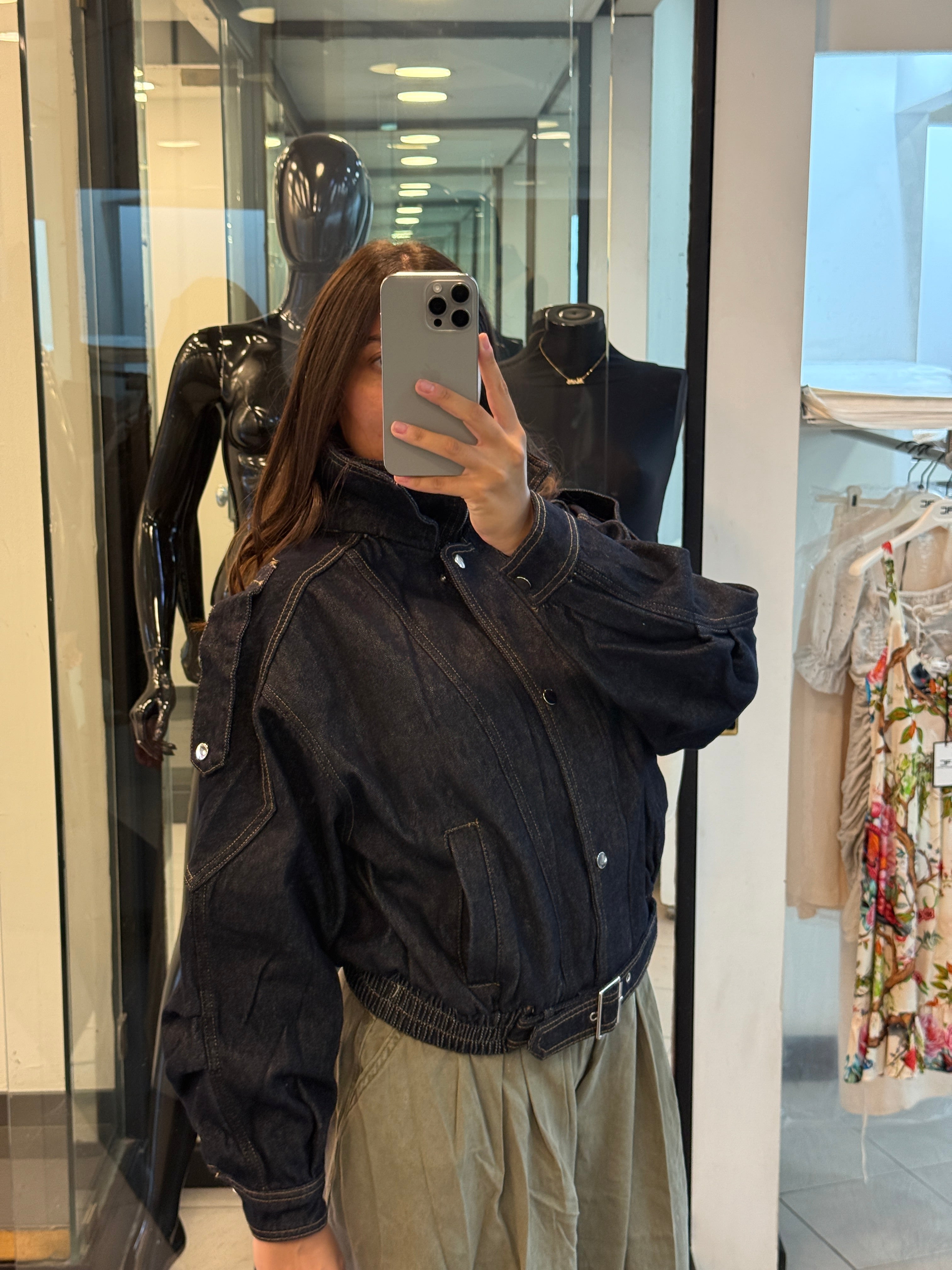 Maxi bomber oversize in denim con interni imbottiti nella colorazione bordeaux