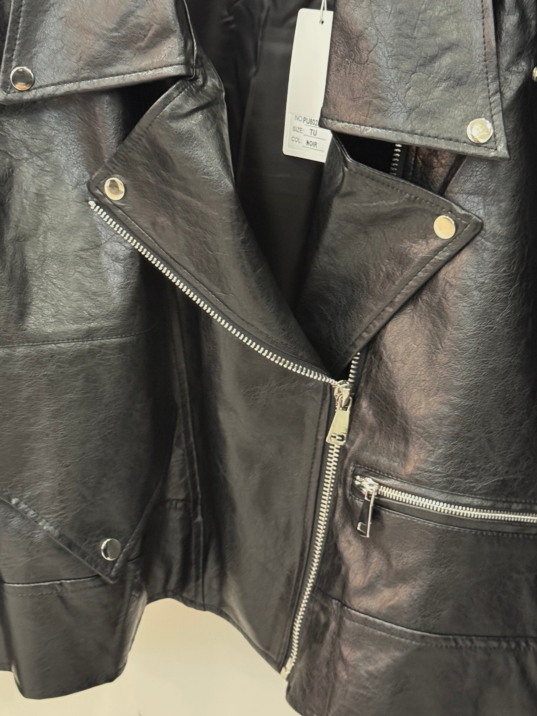 Biker in ecopelle netto oversize con chiusura laterale e tasche